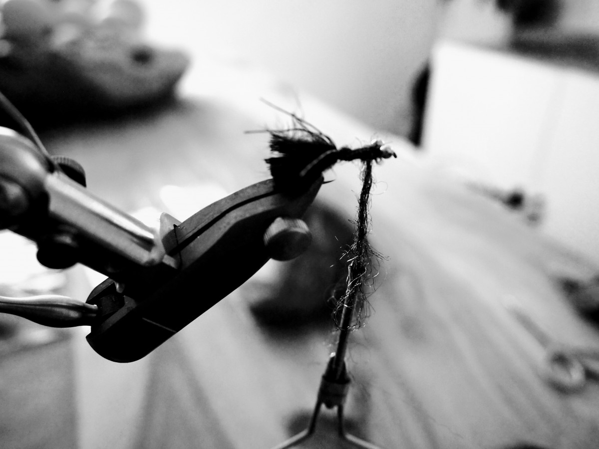 4) Form the body with the Dark Pearl fibers using it as dubbing;